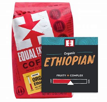 Equal Exchange Organic Kosher Ethiopian Blend w/Fruity & Complex, Notes of Ginger, Spice &. Blueberry, 100% Arabica Full City Medium Roast Whole Bean Fair-Trade Caffeinated Coffee (Case of 6) 12oz Bags