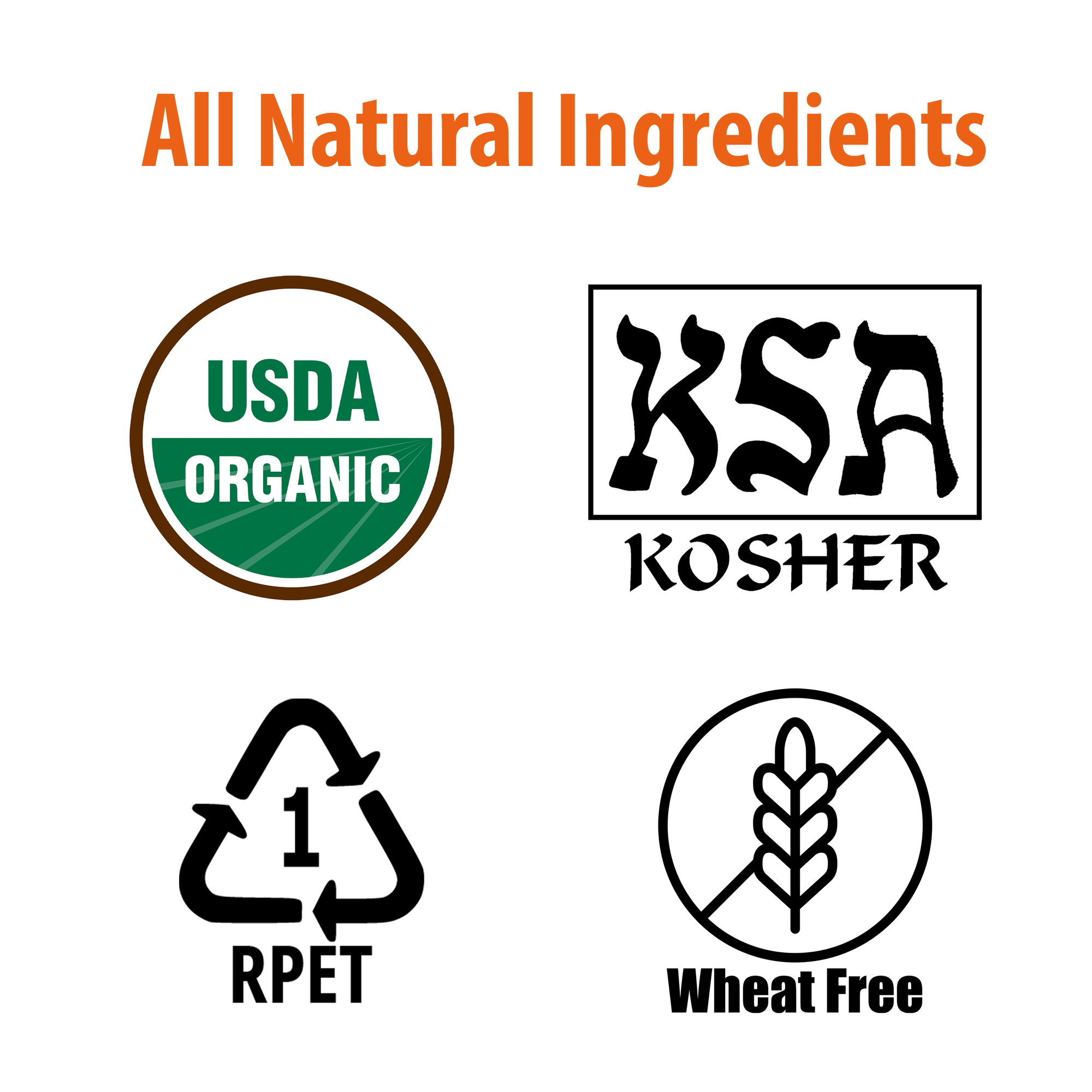 USDA Organic, KSA Kosher, Wheat Free, Non-GMO, Vegan.