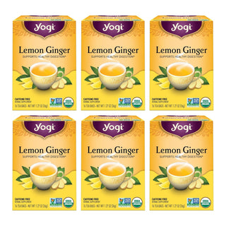 Yogi Organic Herbal Kosher 100% Natural Tea Lemon Ginger w/Ginger Root, Lemongrass, Licorice Root & Peppermint Leaf, Non-GMO, Caffeine-Free Herbal Tea (Case Of 6) 16 Tea Bags