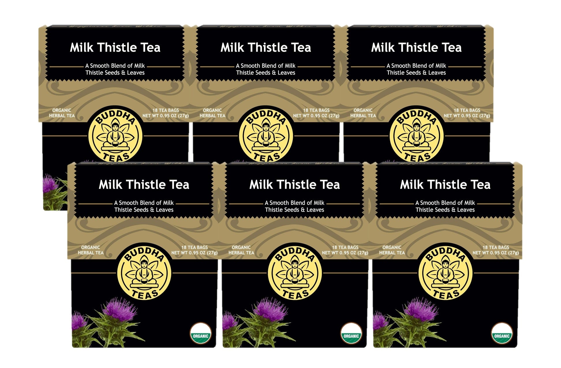 Buddha Teas Organic Kosher Herbal Milk Thistle w/Milk Thistle Seed, Milk Thistle Leaf, GMO-Free, Bleach-Free Caffeinated Herbal Tea (Case of 6) 18 Tea Bags