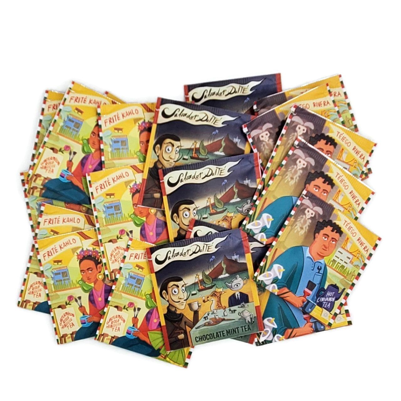 Artisan foods are special and unique. So, we added some of the world's most amazing artists to make some surreal tea flavors. For the art lover, the art teacher, or the casual artist. Sipping and painting. Let them paint your flavor palate with rose, honey, chocolate, and chili.